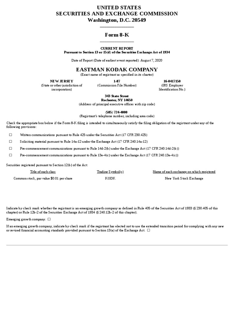 Kodak 8k Pdf Pdf Securities Act Of 1933 Securities Exchange Act Of 1934